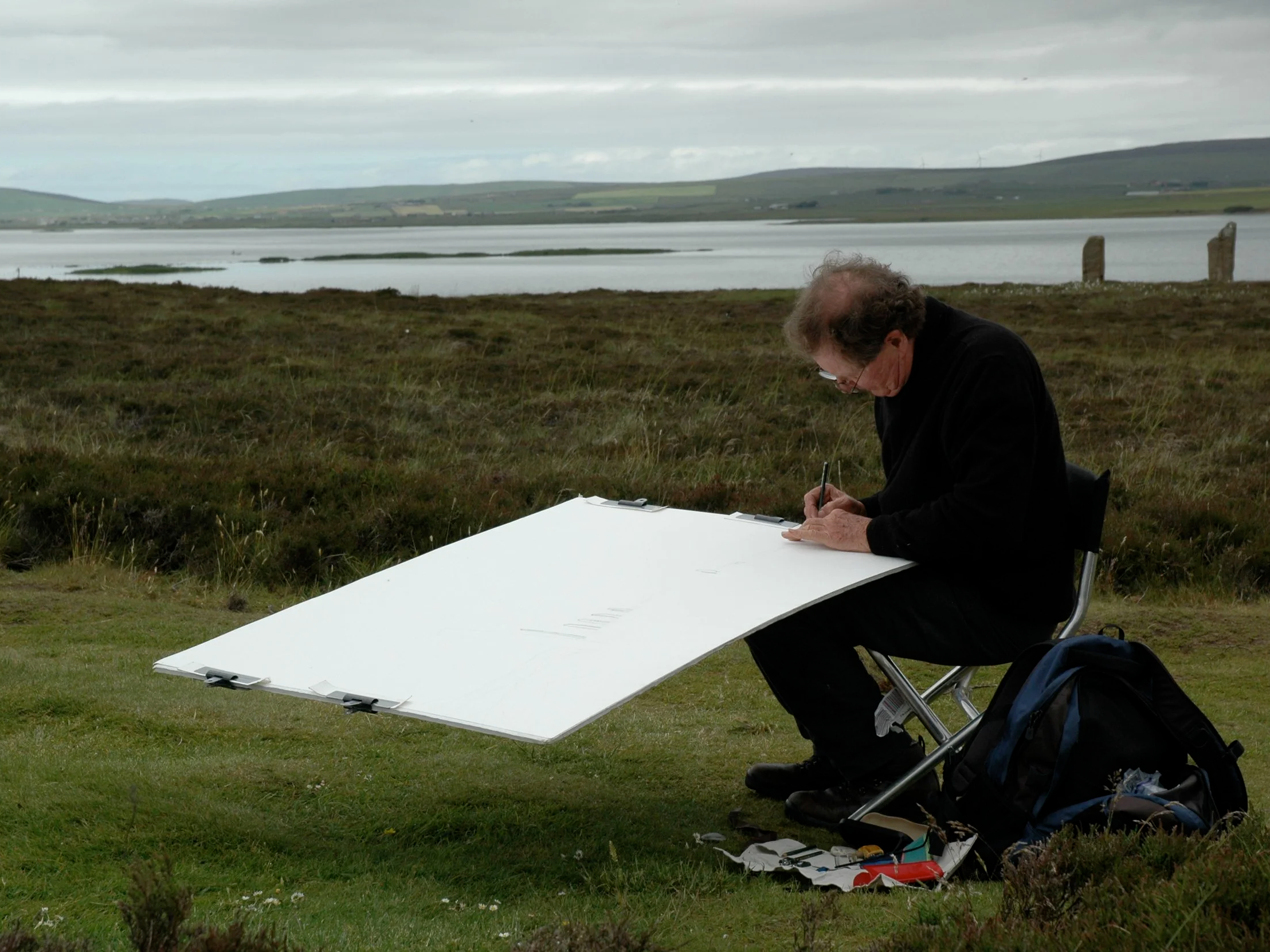 Callanish to Chysauster refers to three drawings in the exhibition. The two works that depict Callanish (Isle of Lewis) were drawn in 2025, and the drawing of Chysauster (Cornwall) in 2000. Both drawings were undertaken on-site in the presence of the stones. Hughes records precisely when he made his drawings at Callanish, the first at 4:00pm and the second at 4:45pm, both on the 12th of October 2025.